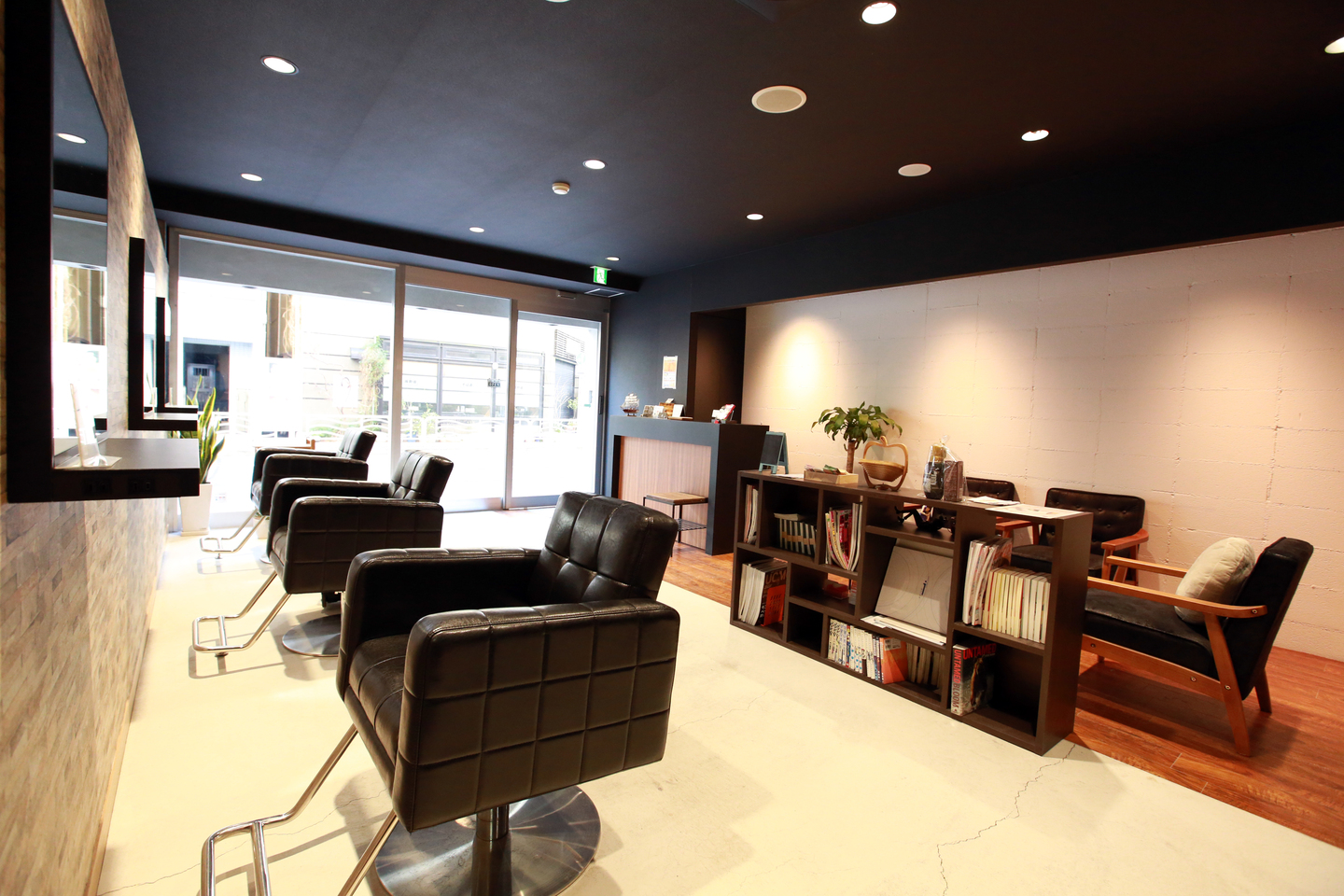 ゆっくりとくつろげるシャンプー台でヘッドスパもオススメです。日々のお疲れを癒します。